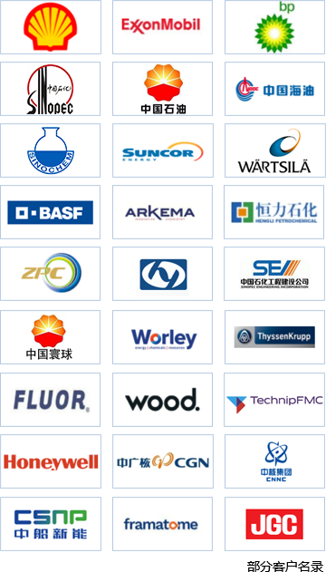 公司憑借強大的綜合實力獲得了國內外眾多大型企業集團的高度認可,形成了良好的品牌效應。公司是中石化、中石油、中海油、中化集團、中核、中廣核、殼牌、埃克森美孚、英國石油、加拿大森科能源、巴斯夫、博萊克威奇、塞班、霍尼韋爾、法馬通、瓦錫蘭、蒂森克虜伯、福陸、日輝、德希尼布千代田等企業的合格供應商。